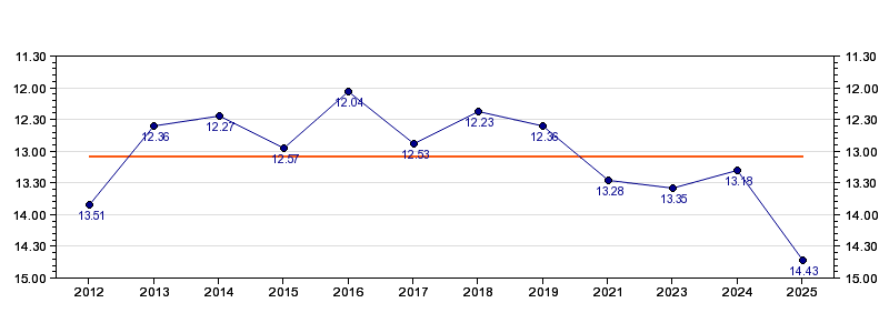 Antall deltagelser12 (i perioden 2012 - 2025)