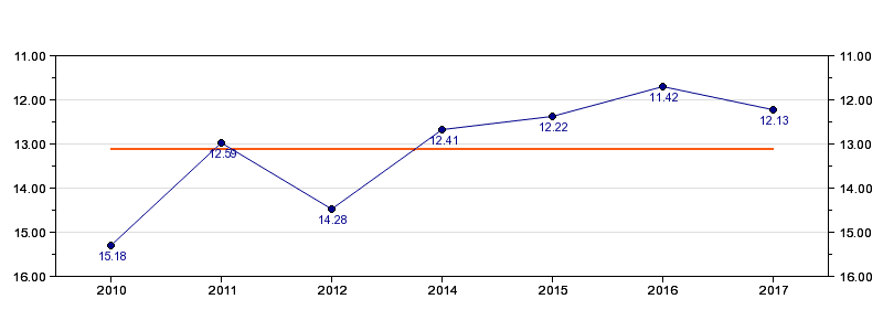 | Forrige tid | 12.13 (2017) |