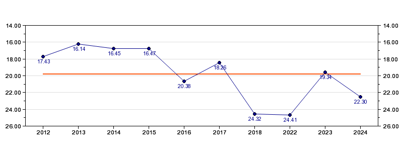Antall deltagelser10 (i perioden 2012 - 2024)
