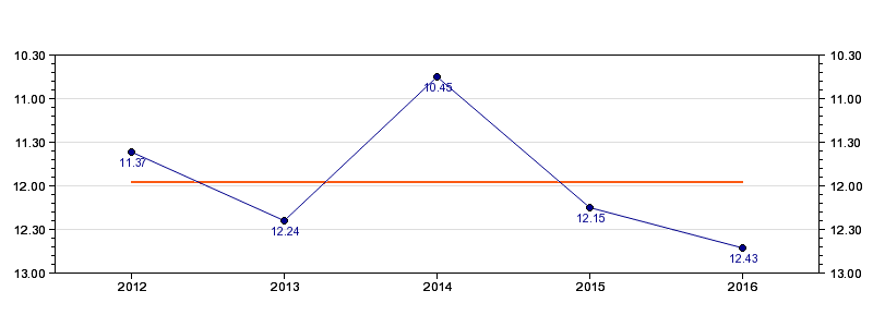 | Forrige tid | 12.43 (2016) |