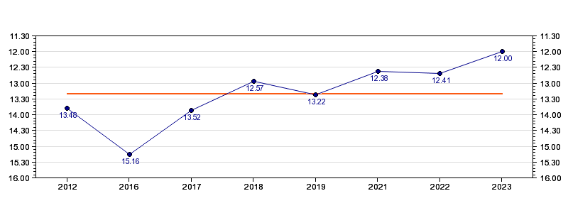 Antall deltagelser8 (i perioden 2012 - 2023)