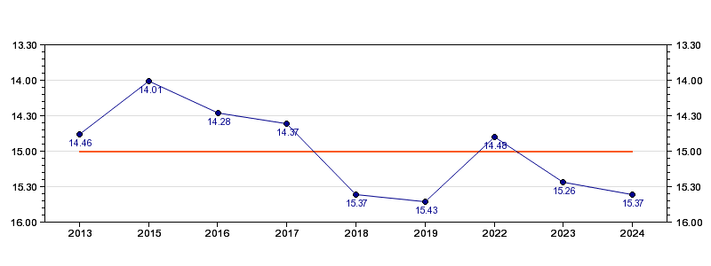 | Forrige tid | 15.37 (2024) |