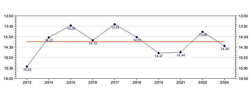 Antall deltagelser10 (i perioden 2013 - 2024)
