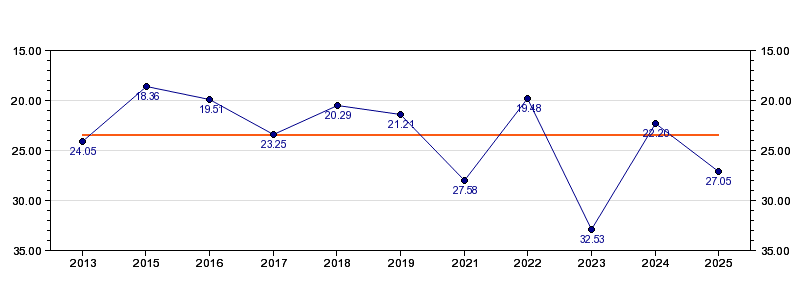 | 2024 | Kalkulator | 22:20 (809 m/h) | 03:33 (909 m/h, 112 %) | 10:07 (06:34, 837 m/h, 103 %) | 19:09 (09:02, 759 m/h, 93 %) | 22:20 (03:11, 784 m/h, 96 %) |