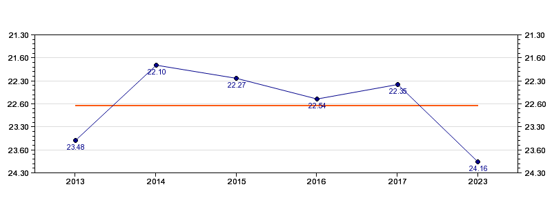| Forrige tid | 24.16 (2023) |