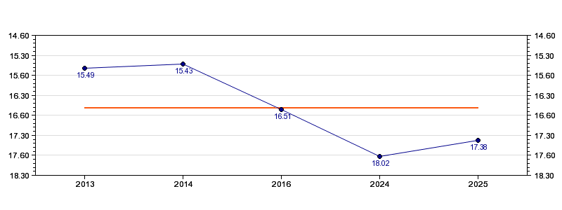 | Antall deltagelser | 5 (i perioden 2013 - 2025) |