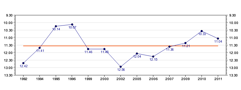Antall deltagelser13 (i perioden 1992 - 2011)
