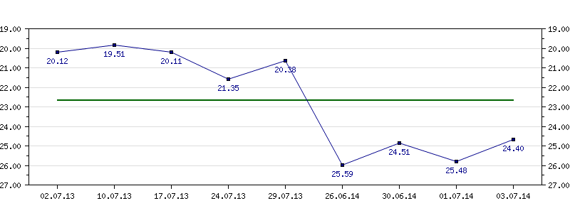 | 30.06.2014 | 24.51 | 01.07.2014 | 25.48 | 03.07.2014 | 24.40 |