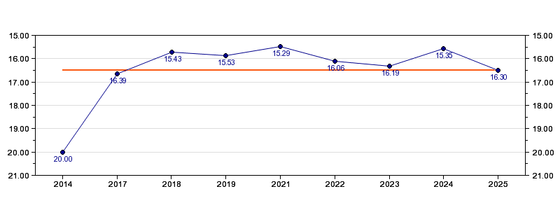 | Antall deltagelser | 9 (i perioden 2014 - 2025) |