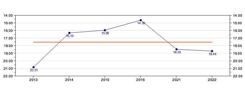 | Forrige tid | 18.44 (2022) |