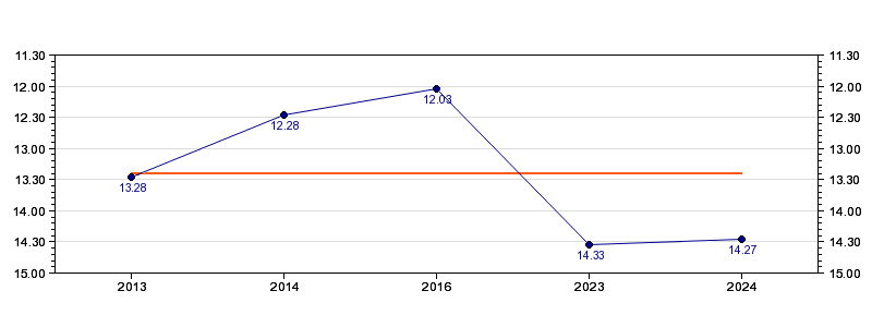| Forrige tid | 14.27 (2024) |