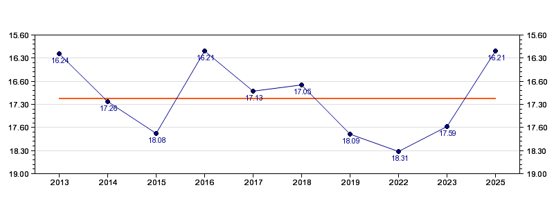 Antall deltagelser10 (i perioden 2013 - 2025)