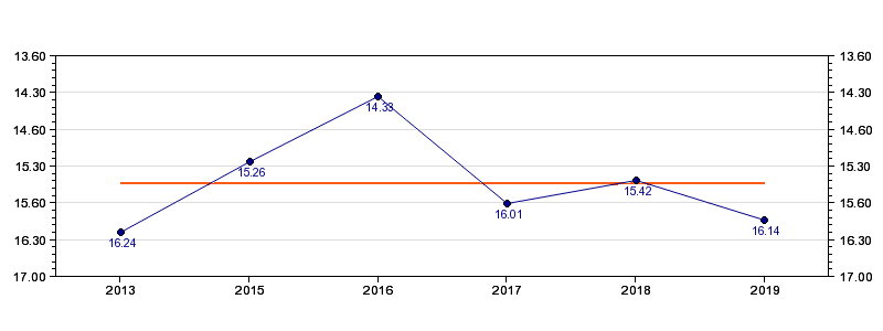 | Forrige tid | 16.14 (2019) |