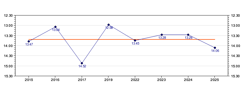 | Antall deltagelser | 8 (i perioden 2015 - 2025) |