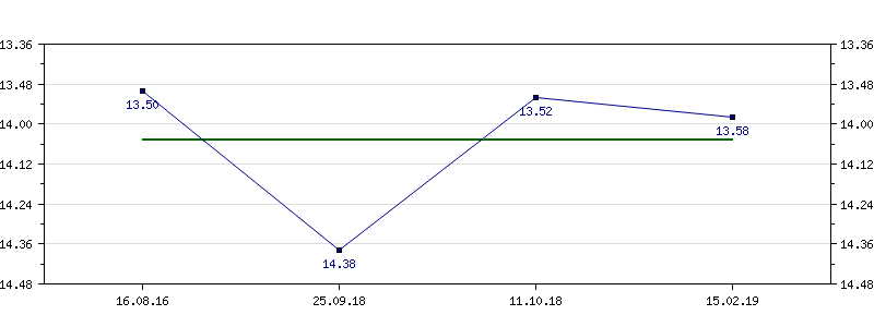 | 16.08.2016 | 13.50 | 25.09.2018 | 14.38 | 11.10.2018 | 13.52 | 15.02.2019 | 13.58 |